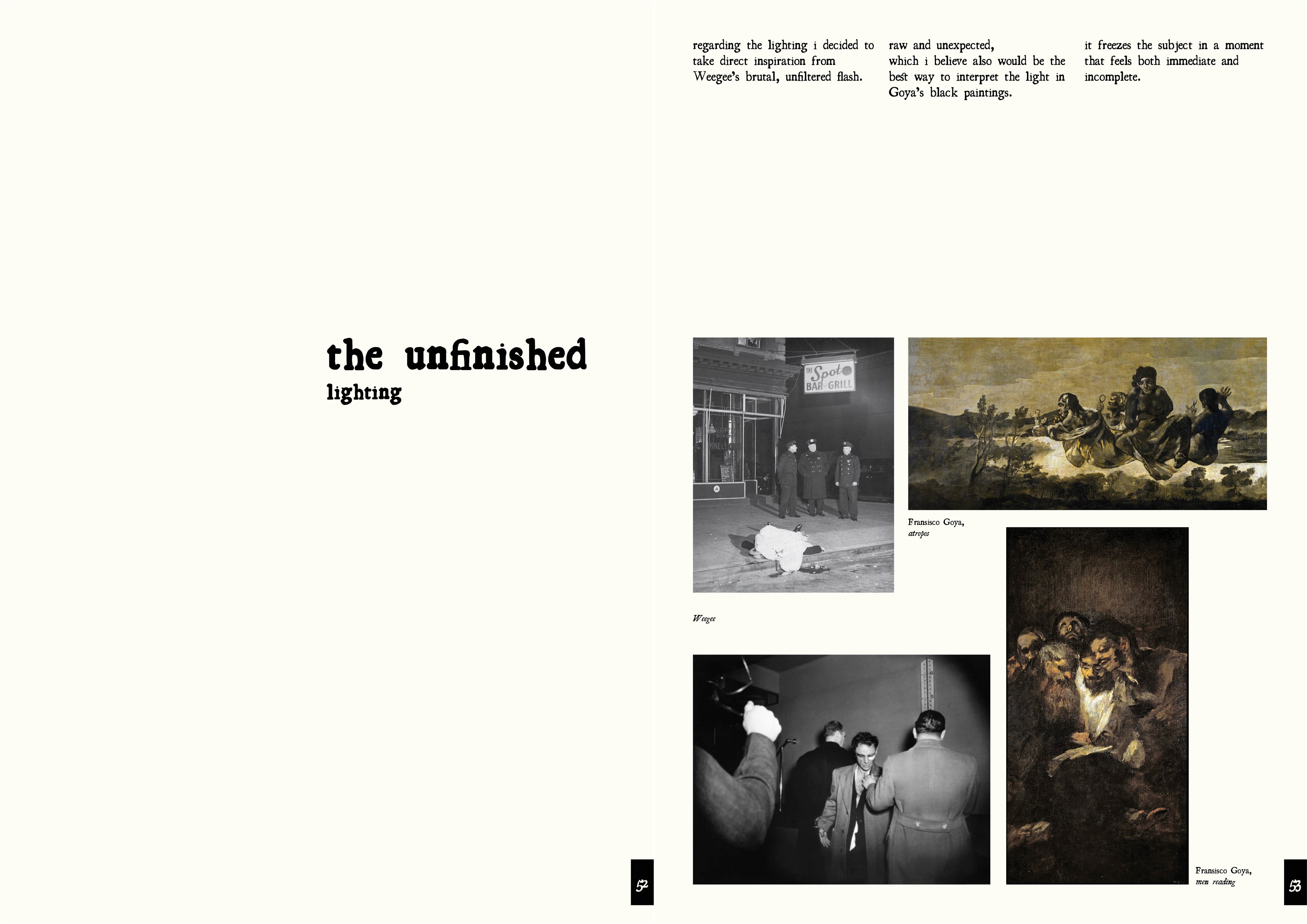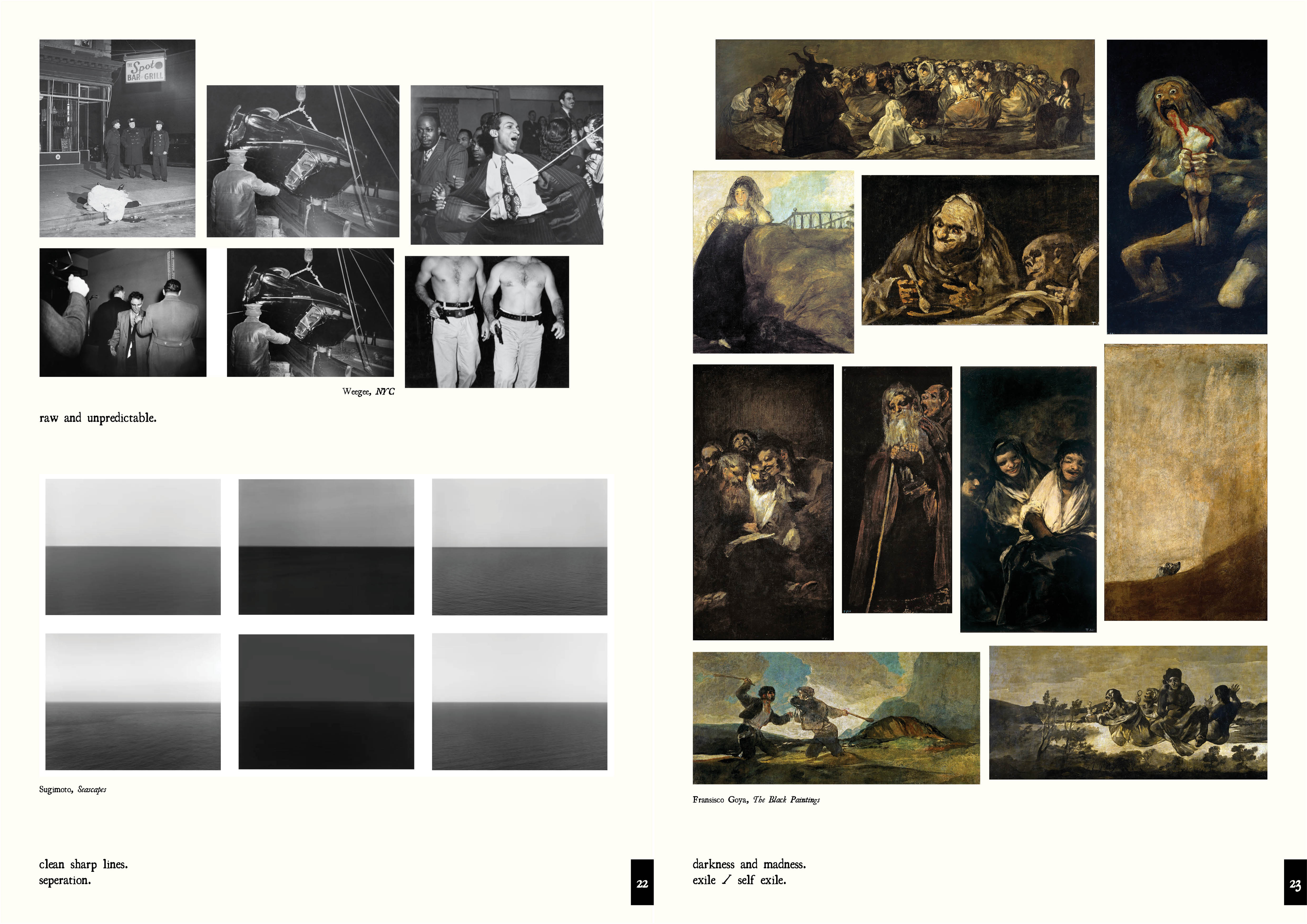 Goya's black paintings, left incomplete and created in isolation, became the key reference. not only visually, but conceptually. their darkness and beauty influenced both mood and composition.